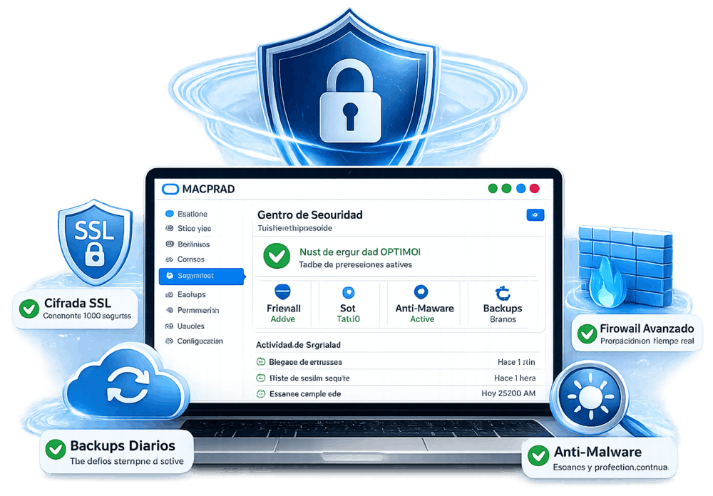MACPRAD te ofrece hosting de alto rendimiento, seguridad avanzada y soporte especializado para que tu web esté siempre online, rápida y protegida.